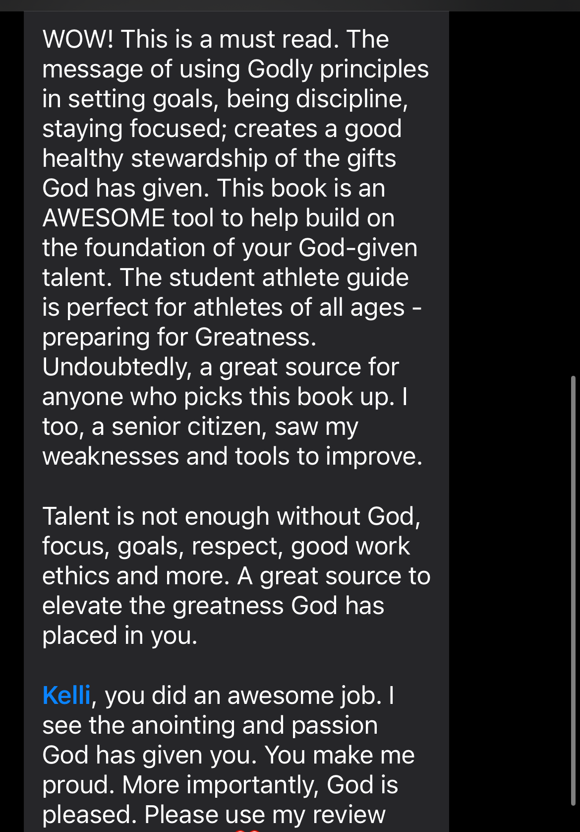With everything I’ve learned and experienced playing and coaching at the college level, I can confidently say that talent itself is not enough to be successful as a student athlete. Your overall mindset as an athlete is just as important to your success as talent. I’ve seen what it looks like when players lack in areas outside of talent and I’ve seen players come to college unprepared. It is a great time to be a student athlete and there are so many great OPPORTUNITIES through sports! Therefore, now is the best time to invest in this book! Don’t just grow your talent, grow your mindset too! Then, you have no choice but to succeed as an athlete and in LIFE!